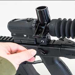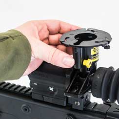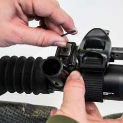 Slide skoped vision onto optic, and ratchet. Ratchet has break away when secured correctly.